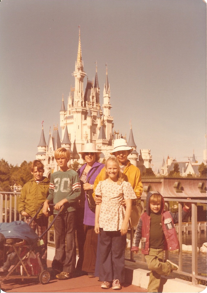 Left to right: Jerry, John, Mom, Becca, Boots, and me, circa 1976. |